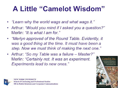 And how can I leave the talk without adding some thoughts from a legendary tale (and mentioning my book, Camelot, Inc.)?